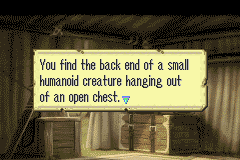 "You find the back end of a small humanoid creature hanging out of an open chest.