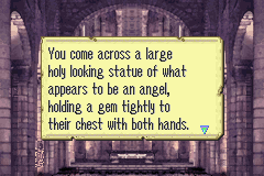 "You come across a large holy looking statue of what appears to be an angel, holding a gem tightly to their chest with both hands.